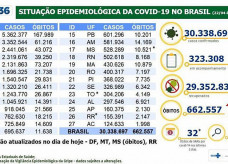 Covid-19: país tem 30,3 milhões de casos e 662 mil mortes
