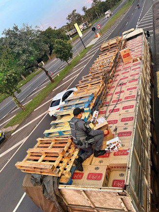 A PMR (Polícia Militar Rodoviária) do estado de São Paulo apreendeu no final da tarde desta terça-feira (16/12), na SP-425, em Pirapozinho, uma carreta Scania, que saiu de Dourados, carregada com cigarros contrabandeados do Paraguai.