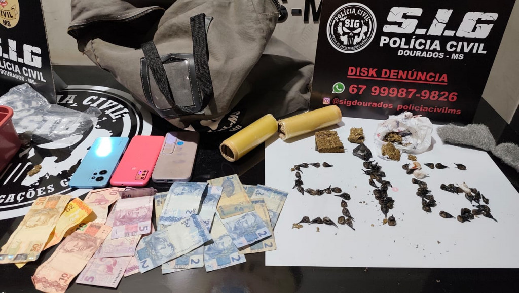 Quando a equipe chegou ao local, Poliana e o menor tentaram esconder o ilícito, porém, sem sucesso. Os policiais apreenderam dinheiro, celulares e material para embalar droga e porções de maconha e crack.
