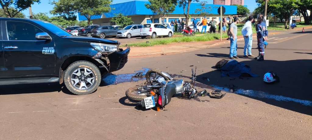 Dourados registrou na manhã desta sexta-feira (23/1), o primeiro acidente de trânsito de 2026, com vítima fatal no local. O motociclista Diego de Souza Cavalcante, de 19 anos, que pilotava uma Honda Titã, prata, foi atingido por uma caminhonete Toyota Hilux próximo à prefeitura.