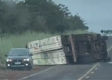 Na manhã desta quarta-feira (16/4), uma carreta tombou na BR-060, em Paraíso das Águas, no trecho conhecido co...