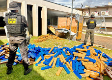 A PRF (Polícia Rodoviária Federal) apreendeu 4,5 toneladas de maconha e um fuzil, na manhã desta segunda-feira...