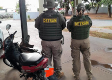 Agentes do Detran apreenderam em Naviraí uma motocicleta com R$ 31,1 mil em multas. A condutora ao ser abordad...